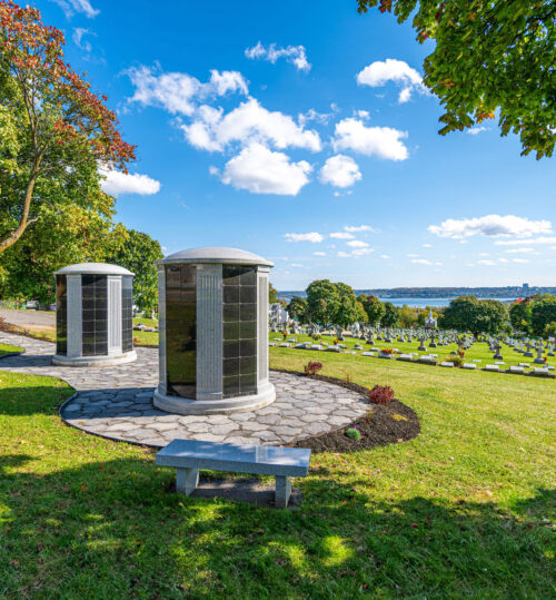 Situés au sommet du cimetière St-Ignace-de-Loyola, nos columbariums extérieurs offrent une vue imprenable sur le majestueux fleuve Saint-Laurent, créant un cadre paisible propice au recueillement et au repos éternel.